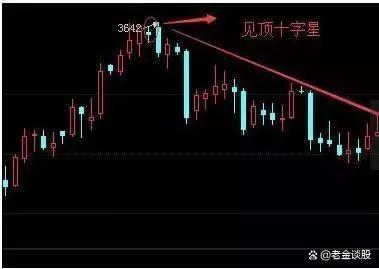 股价经过一波上涨之后,K线若出现十字星、倒锤形阳线或阴线时,则说明股价已经见顶,可视作卖出信号。
