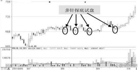 散户在跟主力过程中若遇到多针探底试盘方式的个股,千万不要盲目跟进。因为多针探底是主力反复探底,主力只有测试出价格在这个区域的支撑力度相当强之后,才会选择进入拉升阶段。所以,我们不要认为价格马上就会上涨,应该等到主力探明底部之后,出现向上走强的信号时再介入。
