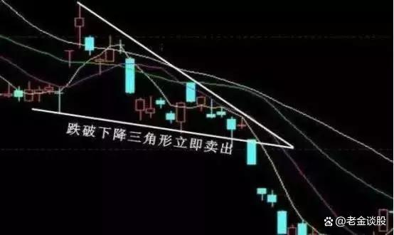 3、下降三角形低点形成水平线而高点不断下移形成一条下倾线,显示抛压加大,一旦水平线跌破应立即卖出。