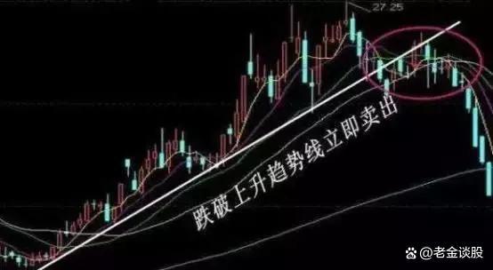 4、上升趋势线上升一段时间后,突然破位下跌,并跌破上升趋势线的下轨线,说明上升趋势已变,此时应立即卖出。